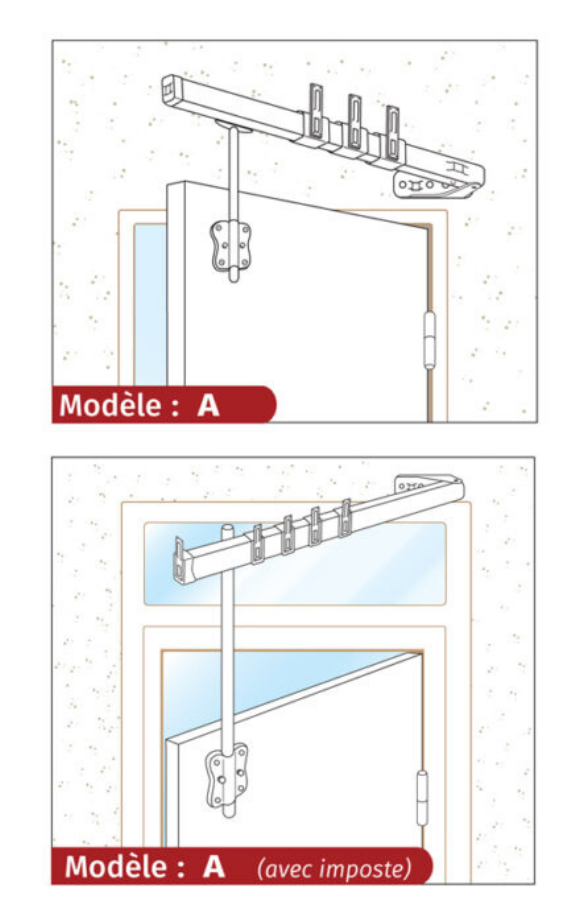 Oui, le système est réversible et convient aux portes droites ou gauches, avec ou sans imposte.