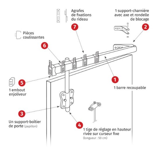 - Innovation utile : le système pivotant accompagne la porte dans tous ses mouvements, permettant de poser facilement un rideau isolant sans gêner l’ouverture ni la fermeture.