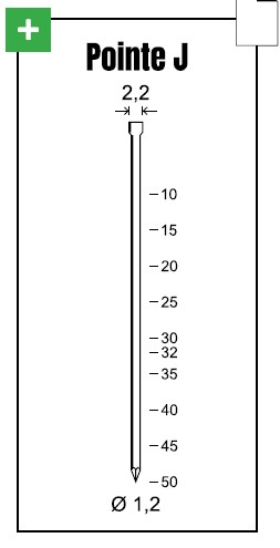 - Types de projectiles compatibles : agrafes E (12 à 30 mm) et pointes J (10 à 32 mm)