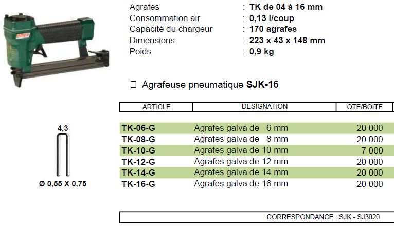 Agrafeuse pneumatique OMER SJK 16 pour agrafes TK